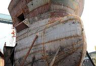 im Trockendock der Schiffswerft Blohm + Voss bekommt ein Frachtschiff