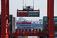 011_14864 über die grosse Containerbrücke wird die Ladung des Frachters am Burchardkai gelöscht. Die HHLA (Hamburger Hafen und Logistik AG) betreibt neben dem Containerterminal Burchardkai auch die Terminals Altenwerder CTA und Tollerort >> |